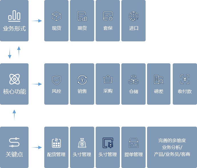 深层次的授信、物权等风险控制体系,针对贸易过程中的资金流、物流、商流利用信息技术提供事